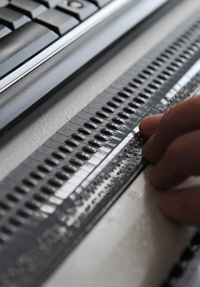 PC-Tastatur mit tastbarer Braille-Zeile.